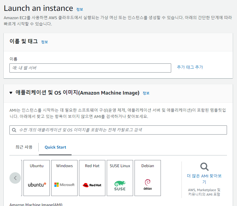 이후 원하는 서비스를 구성하여 인스턴스 생성하기