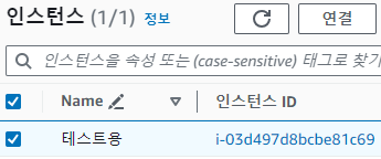 AWS 페이지에서 인스턴스 선택 후 연결 클릭