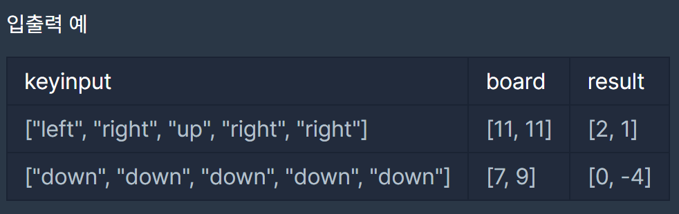 머쓱이가 입력한 방향키의 배열 keyinput와 맵의 크기 board이 매개변수로 주어집니다.