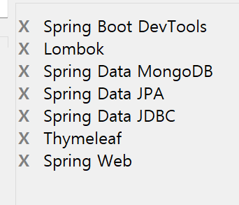 타임리프, MongoDB를 사용할 것이라 체크하고 생성 진행