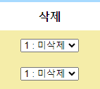 여기도 글 목록을 쭉 출력, 글 삭제 여부에 글 삭제, 복구 여부를 선택 가능