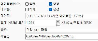 출력 : 단일 .SQL 파일