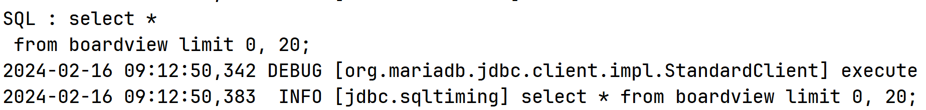 /board 를 입력했을 때 나오는 로그