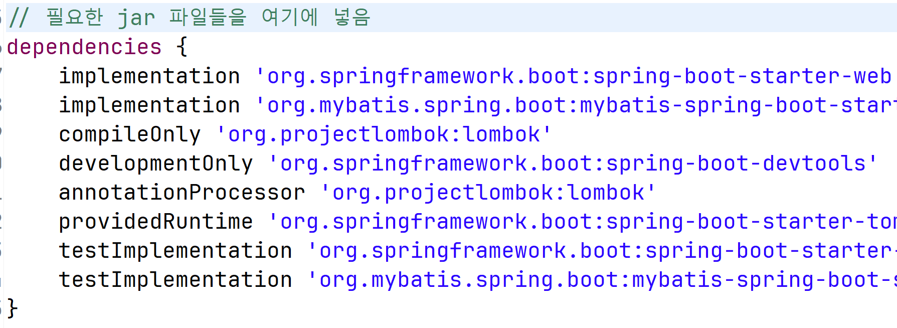 implementation "org.apache.tomcat.embed:tomcat-embed-jasper" // tomcat사용하기