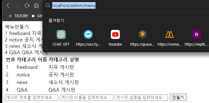 기존의 menu 목록들을 반복문으로 전체 출력할 수 있게 함