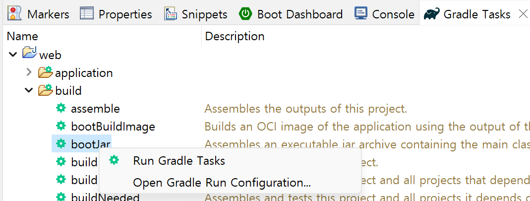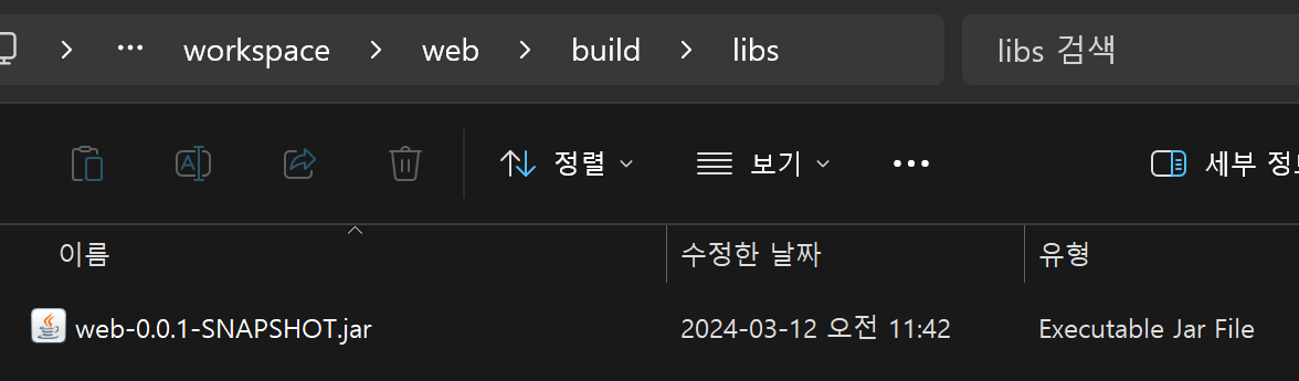 이클립스 workspace > 프로젝트명 > build > libs 에 생성된 .jar 파일 확인